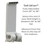 The NEW bFan® delivers a cooler, deeper, more restful night’s sleep while saving you money on your electric bill. Adjustable height, remotely controlled speed, quiet, stable and powerful when you need it.